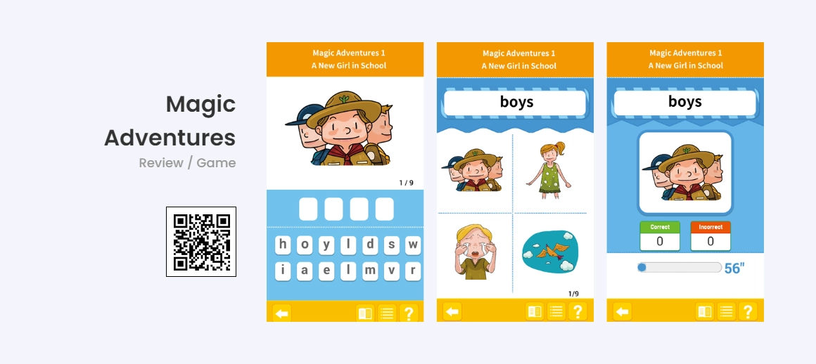 Bezpłatna aplikacja mobilna to idealny sposób, aby sprawdzić, czy dany podręcznik i forma nauki poprzez aplikację odpowiada Twojemu dziecku, czy jest dla niego angażująca i zrozumiała. Możesz zobaczyć, jak działa interaktywność, posłuchać poprawnej wymowy i przekonać się o wysokiej jakości grafiki i dźwięku.